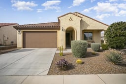 This home fits the bill as a great second home or fulltime residence. It sits on the sought-after mountain side of the vibrant 55+ community of Sun City Festival? Located just a short walk from the Saguaro Recreation Center, this beautiful 2-bed, 2-bath Hideaway model has all its furnishings reasonably priced and available for purchase. The home features a spacious great room/kitchen/dining combination with upgraded tile floors. The interior is open and bright with upgraded light Gray cabinetry and granite counters in the kitchen along with stainless steel appliances including the refrigerator and a smooth top electric range. The bedrooms are carpeted, and the owner's suite includes dual vanities and cultured marble shower surround. The guest bath features a tub/shower combination. The laundry includes the washer and dryer. This home occupies an oversized lot with an extended paver patio in the backyard which is spacious and private. The garage floor is epoxy coated, garage door is insulated and the home includes a soft water system.